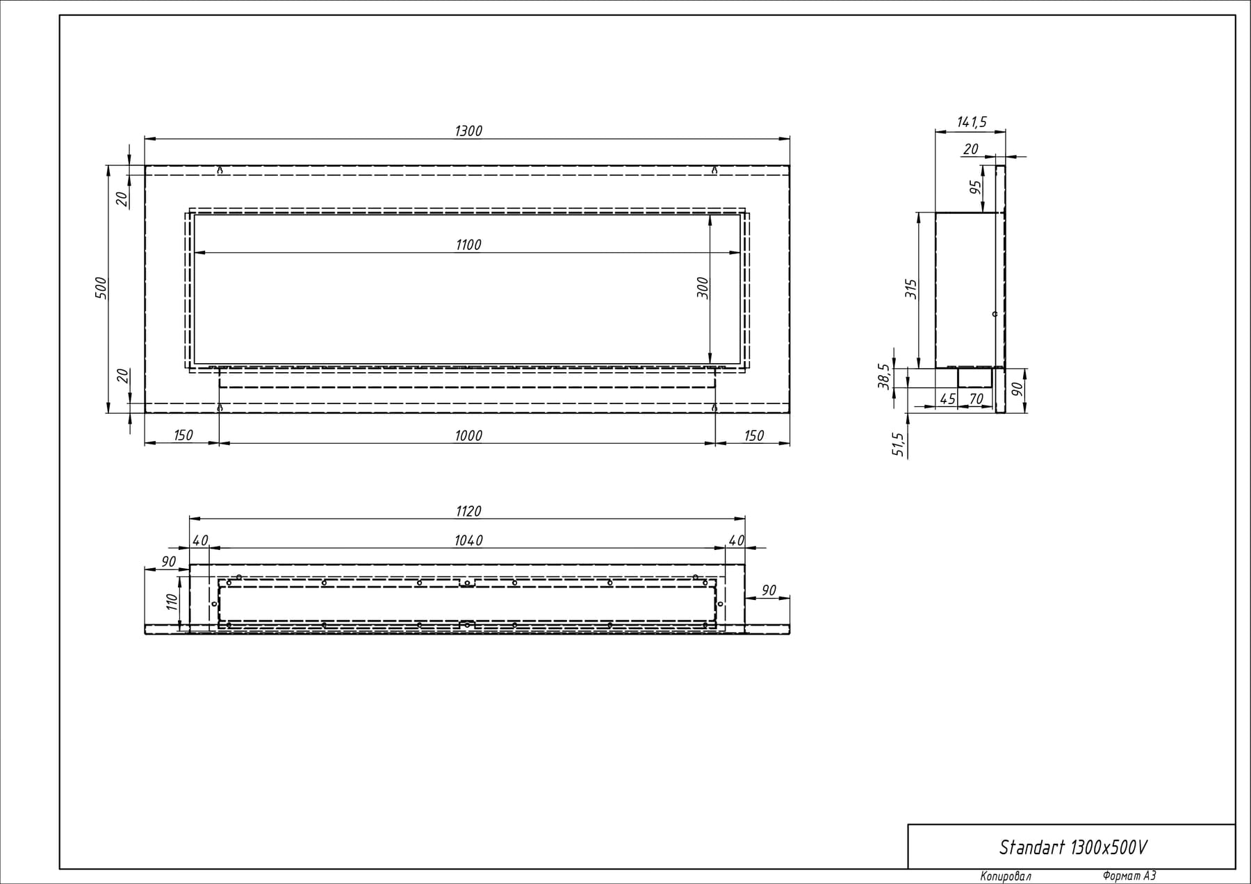Встраиваемый биокамин «Голд 1300V» изготовлен из стали и нержавеющей стали, окрашен термостойкой порошковой краской.