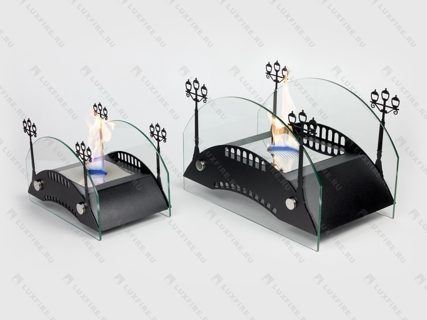 Представляет собой биокамин, который создан по мотивам мостов дореволюционной России середины ХIX-начала XX века и состоит из металлического корпуса с топливным блоком Lux Fire 100-1 огражденным с двух сторон скругленными защитными стеклами на дистанционных держателях и декоративными металлическими накладками в виде «Фонарей»